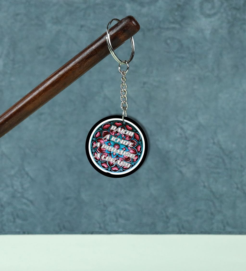 Celebrate the sacred bond of protection and tradition with our Rak?ha?sk?it Round Keychain. Inspired by ancient Indian motifs and symbols of divine guardianship, this keychain blends cultural elegance with daily utility. A perfect token to carry blessings wherever you go, it's more than just a keyholder
