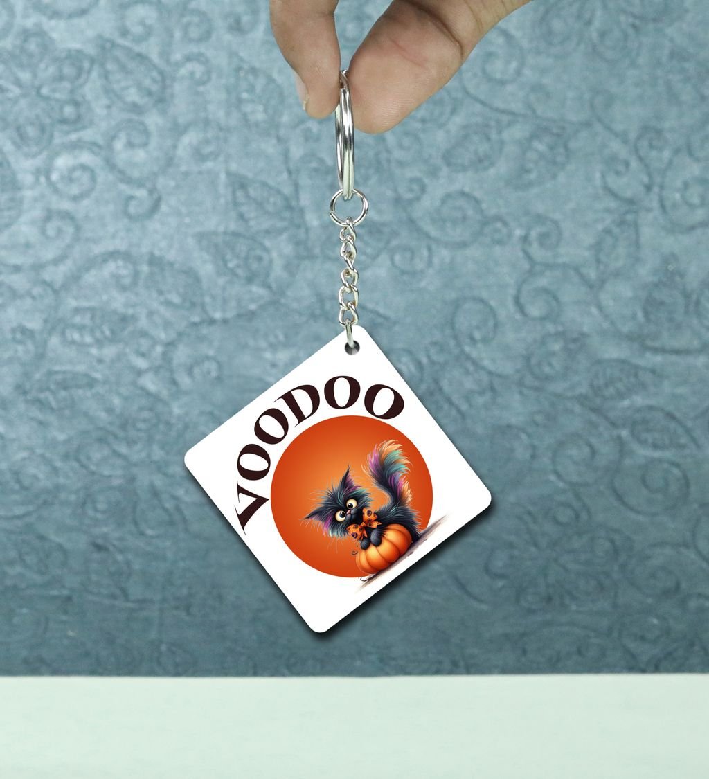 Add a twist of spooky charm to your everyday carry with this Hollo-Wello themed square keychain! Featuring quirky Halloween-inspired art and bold seasonal colors, it
