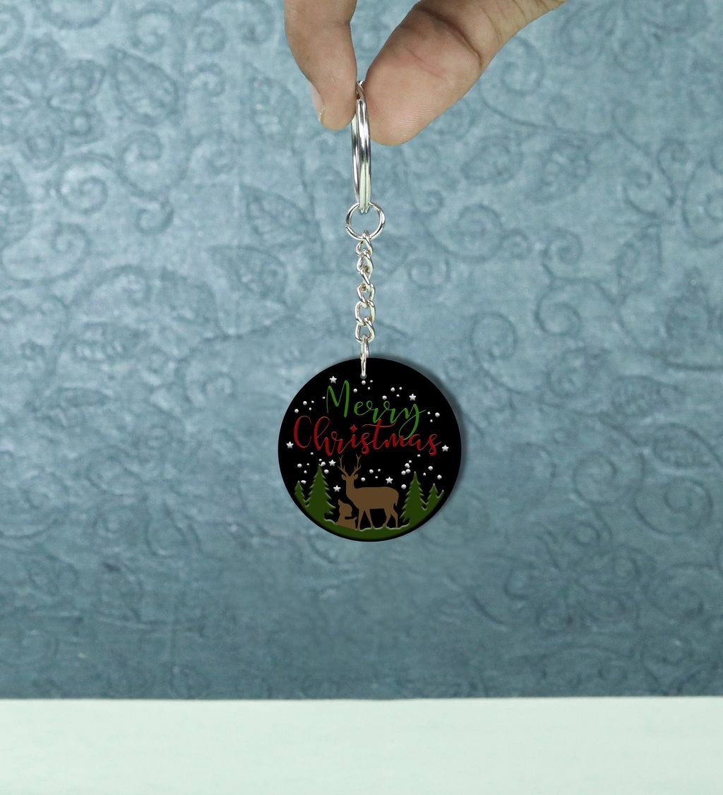 Experience the Magic of Winter Wonder with Christmas Printed Round Keychain Pack of 2