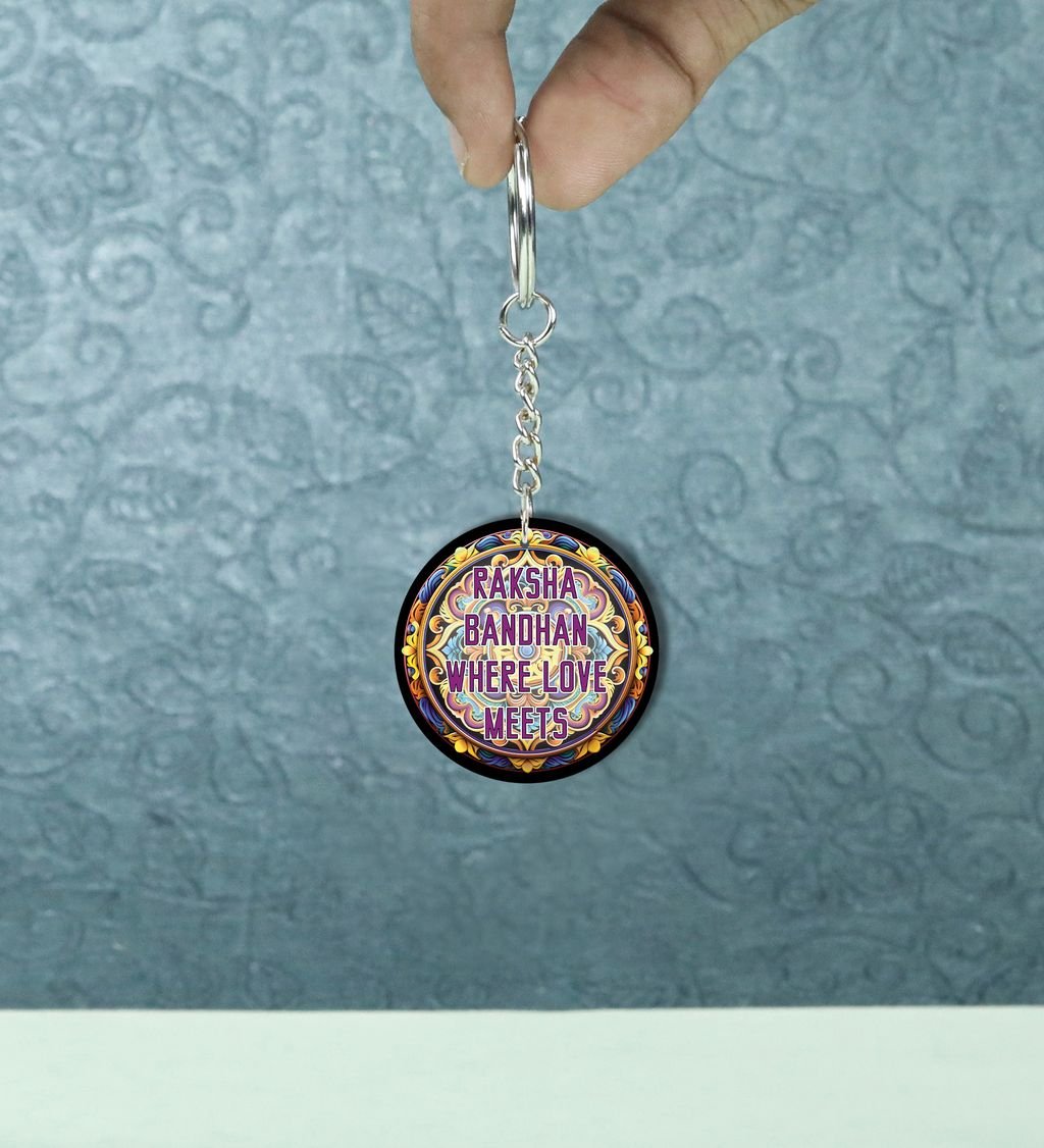 Celebrate the sacred bond of protection and tradition with our Rak?ha?sk?it Round Keychain. Inspired by ancient Indian motifs and symbols of divine guardianship, this keychain blends cultural elegance with daily utility. A perfect token to carry blessings wherever you go, it's more than just a keyholder