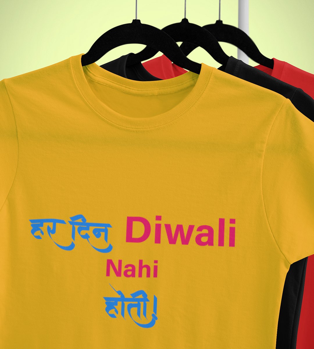 Har din diwali nahi hoti printed diwali themed unisex round neck blended yellow t-shirt specially for diwali festival