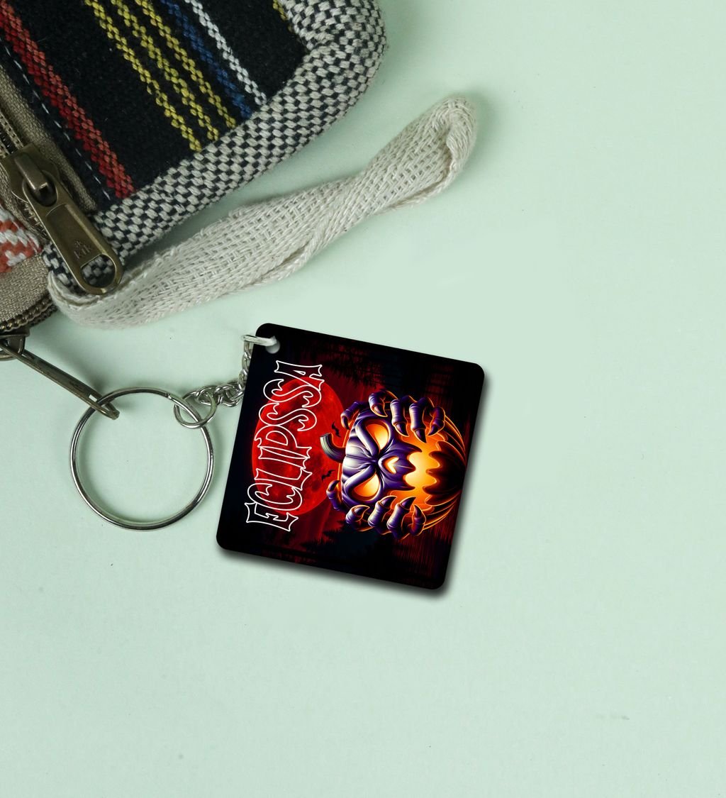 Haunting Flame Skull and Blood Moon Eclipse Design Printed Keychain Pack of 2