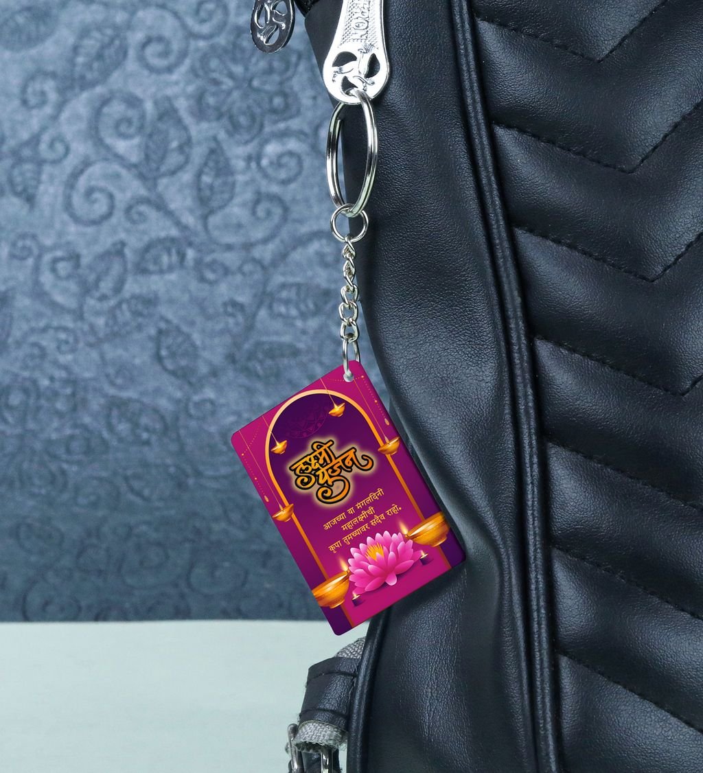 Celebrate the spirit of Deep Utsav with this vibrant rectangular keychain, inspired by the radiant glow of Diwali lamps. Featuring festive colors and intricate patterns, it adds a touch of joy and tradition to your everyday carry. Lightweight and durable, it's perfect for gifting or keeping the festive vibes close all year round. Carry a piece of the festival of lights wherever you go.