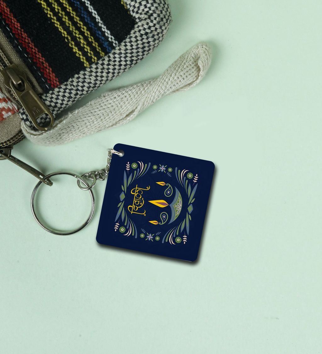 Sparkle with Positivity Diwali Slogan Printed Square Keychain