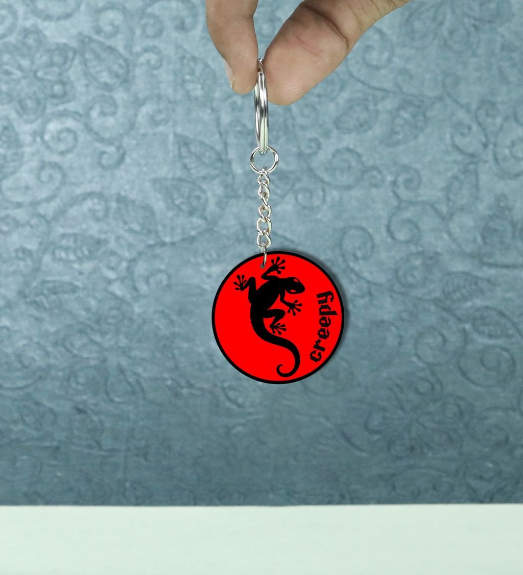 Striking Black Lizard Illustration Paired with Creepy Text Printed Round Keychain Pack of 2