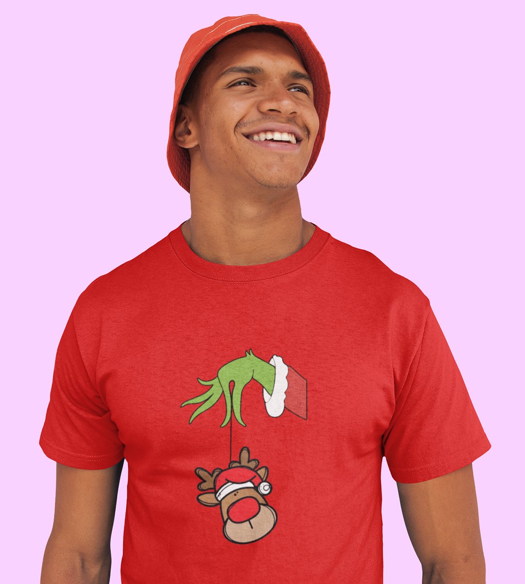 Alien & Reindeer:(Red) Christmas Edition Printed T-shirt - Ideal for Spreading Holiday Cheer at Gym, Yoga, and Outdoor Activities