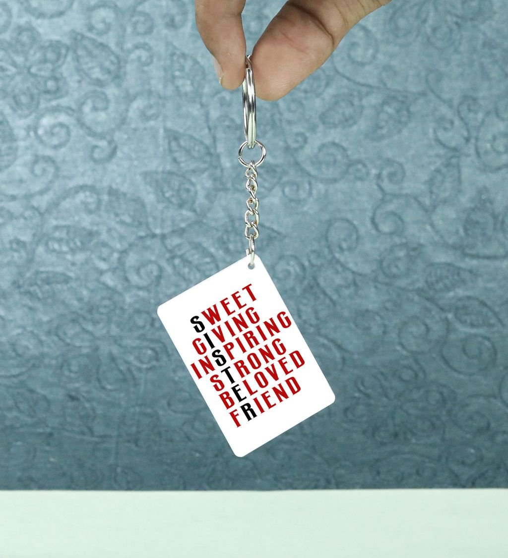Celebrate the pure bond of Raksha Bandhan with our Bandhan of Blessings printed keychain. Designed to capture the love, care, and protection shared between siblings, this keychain makes a meaningful keepsake and a thoughtful gift. Lightweight, durable, and stylish, it