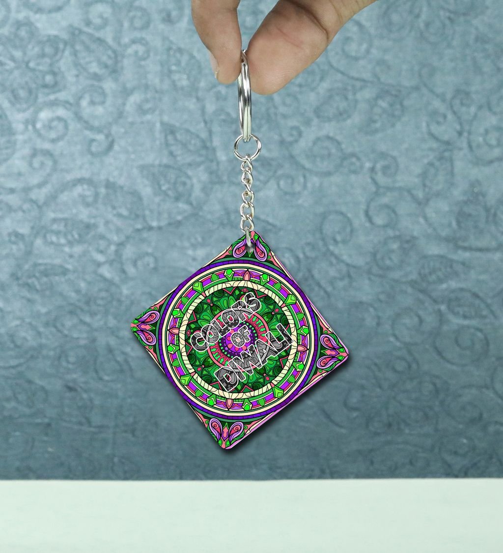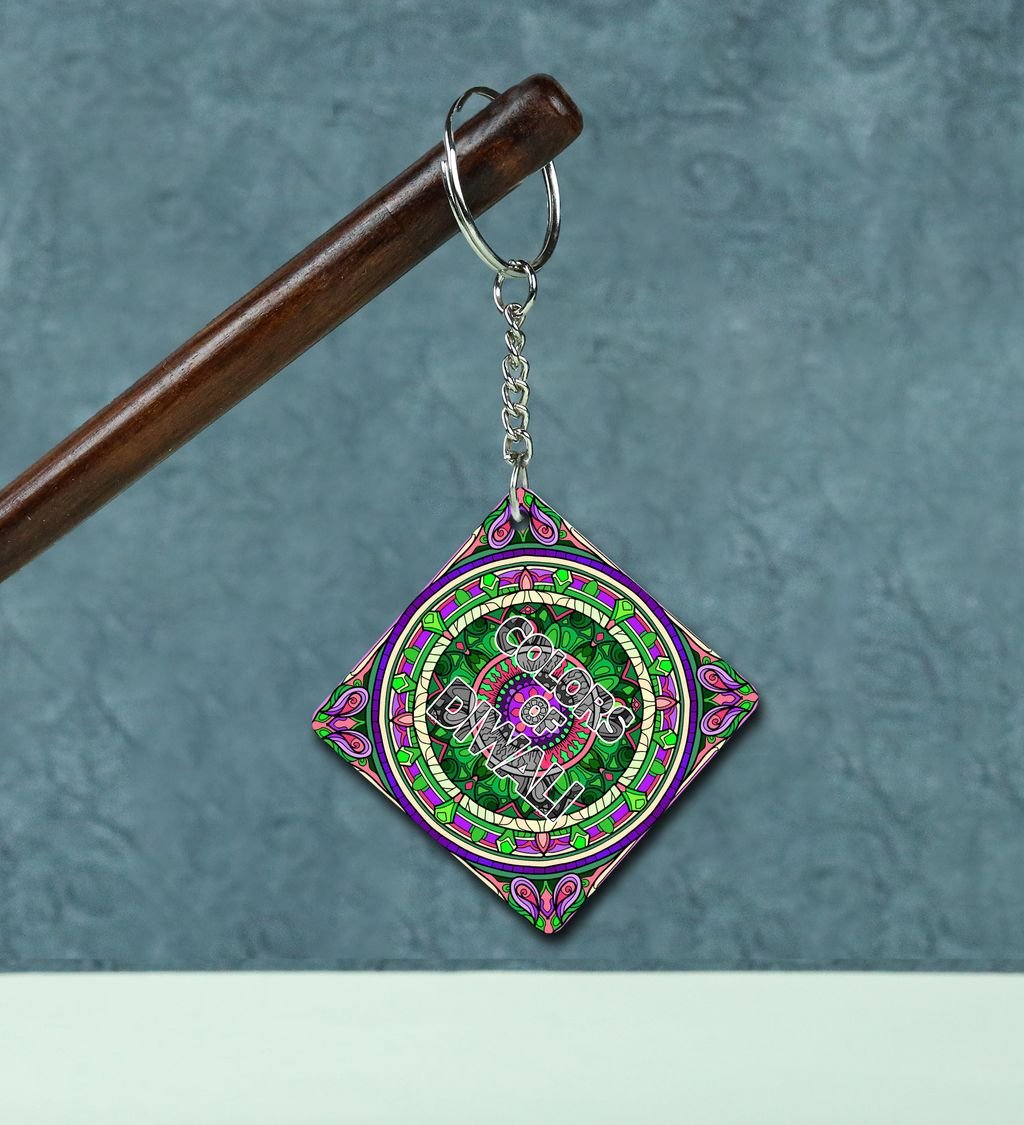 Celebrate Diwali Lights with Vibrant Neon Deep Printed Keychain Pack of 2