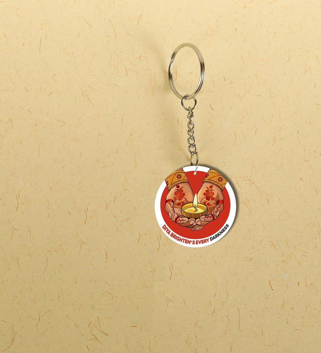 Celebrate Inner Light with Starry Diwali Design Printed Round Keychain Pack of 2