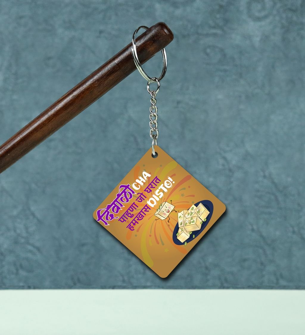Celebrate Sparkle and Shine Diwali Slogan Printed Square Keychain