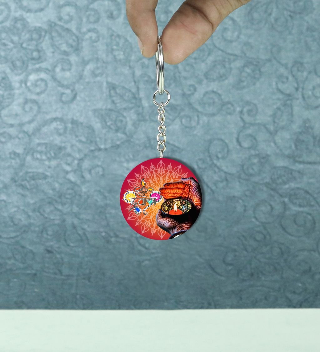 Celebration of Lamps Diwali Printed Round Keychain Pack of 2