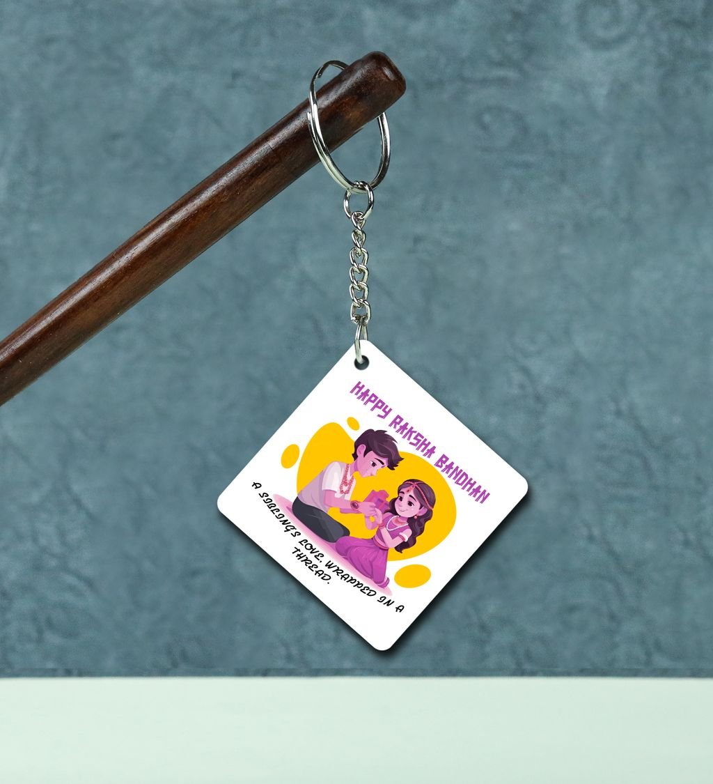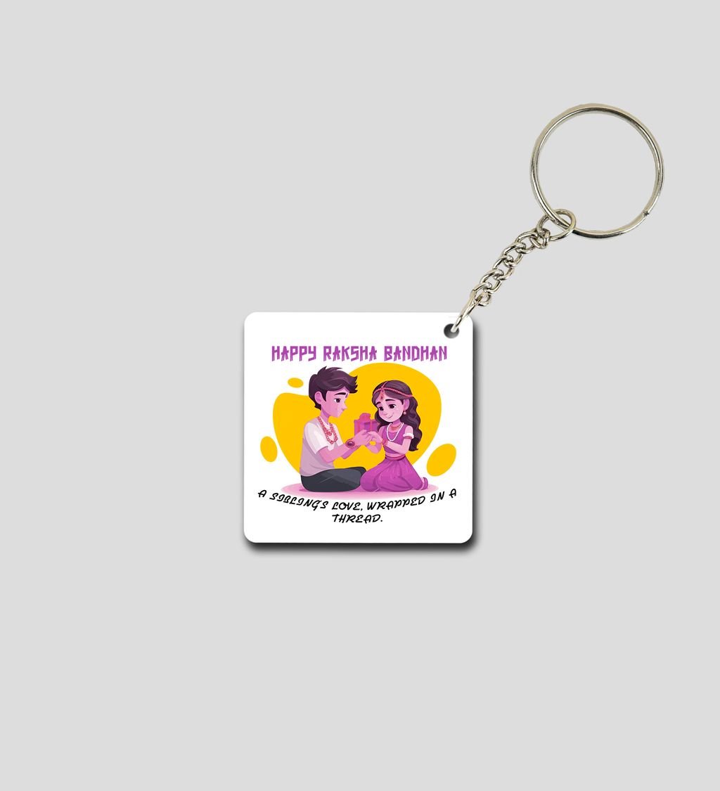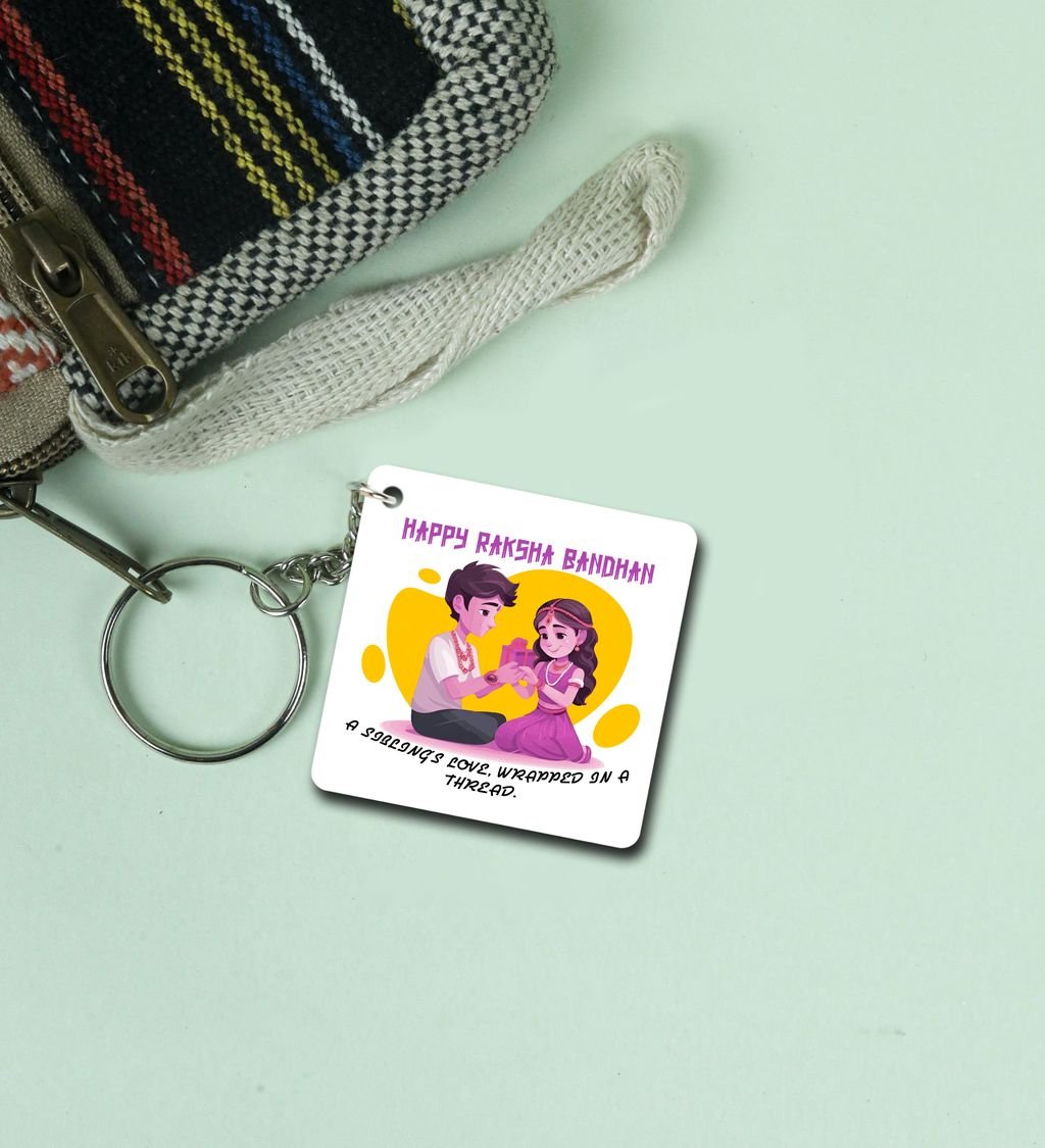Colorful Raksha Bandhan Celebration in Art Style Printed Keychain Pack of 2