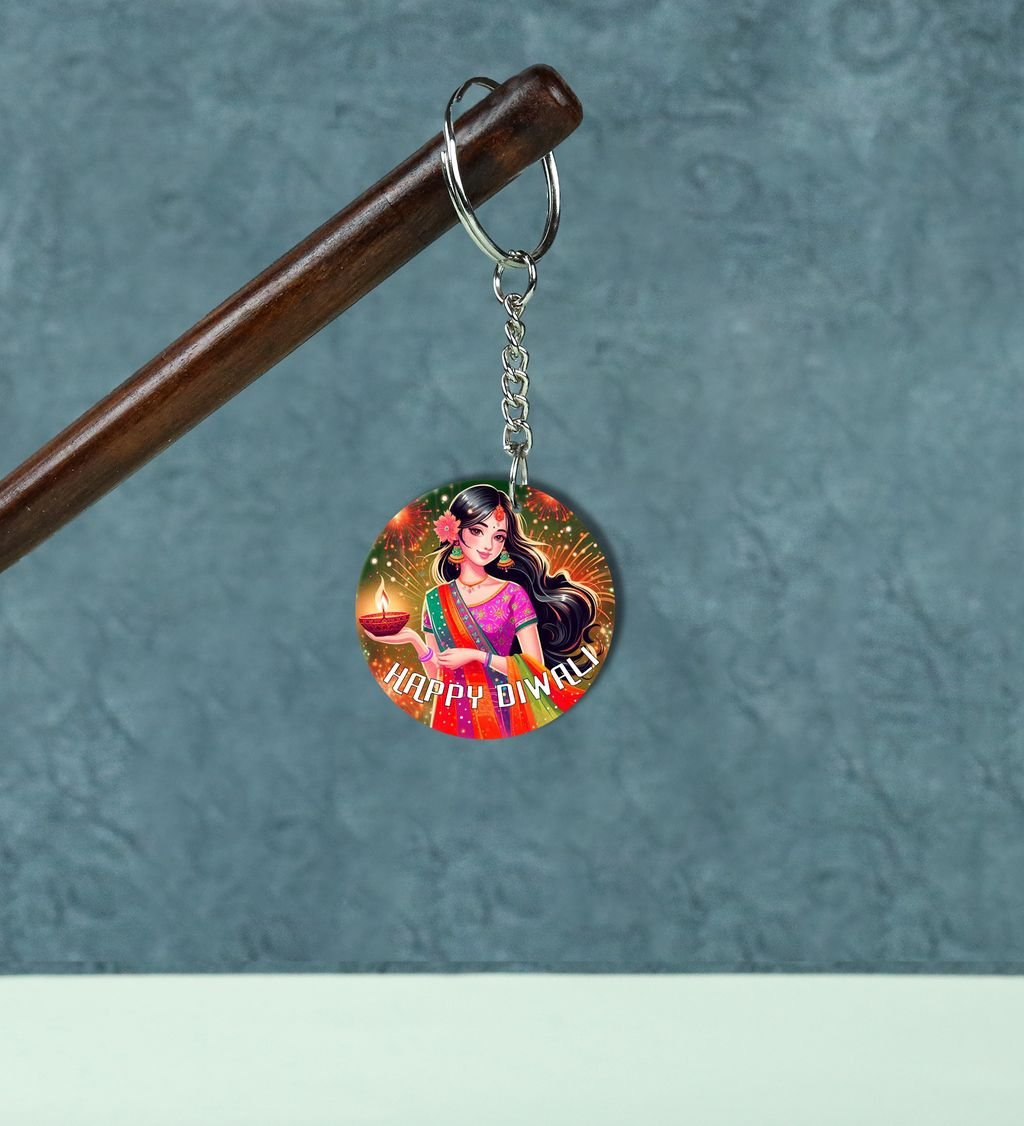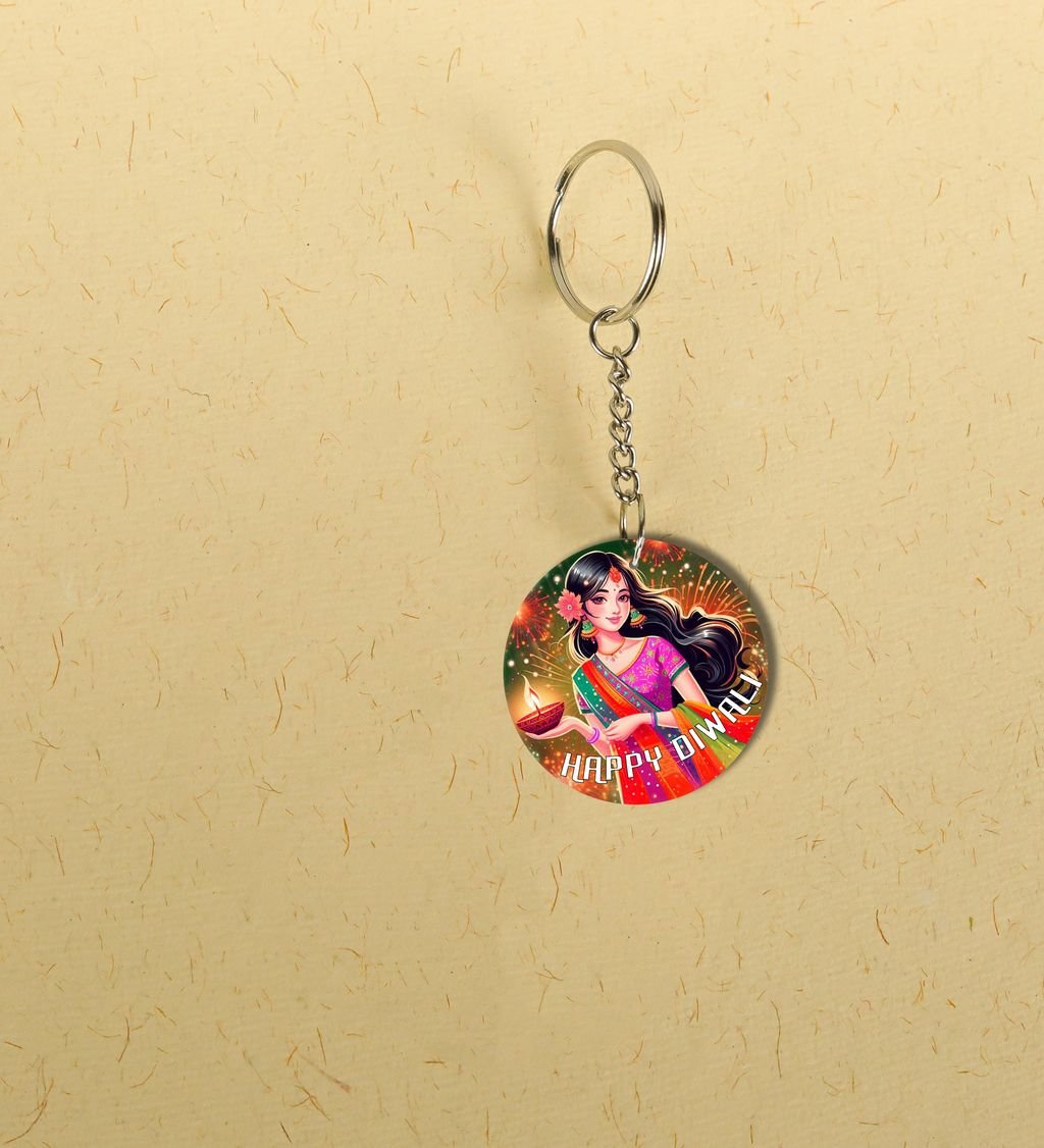 Colorful Rangoli Art Diwali Printed Round Keychain Pack of 2