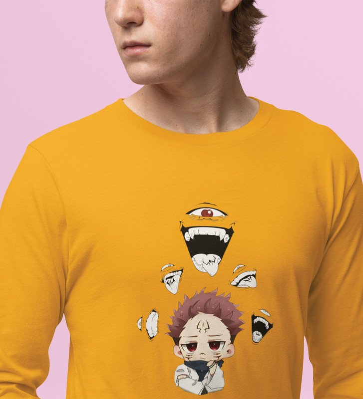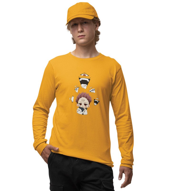Cute Itadori Printed Cotton Yellow Full Sleeves Tshirt For Mens and Boys
