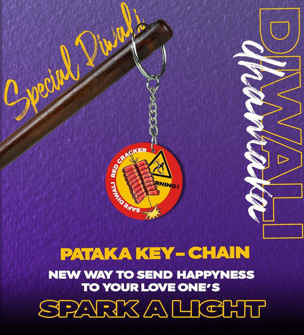 "Diwali Magic in Your Hands: Big Red Pataka Keychain for Loved Ones - Printed Round Keychain Pack of 2"
