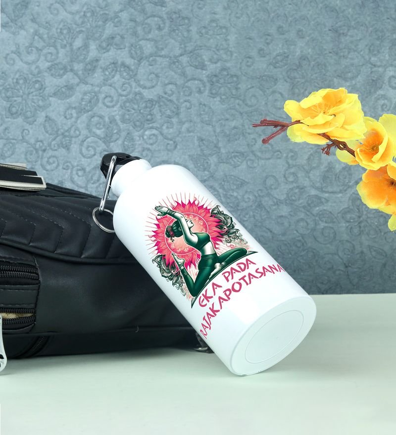 Eka Pada Rajakapotasana Yoga Pose Art Aluminium Printed Sipper Bottle 600ml