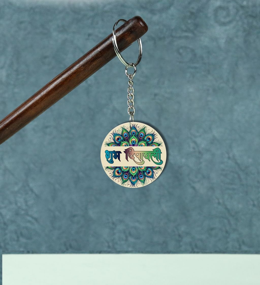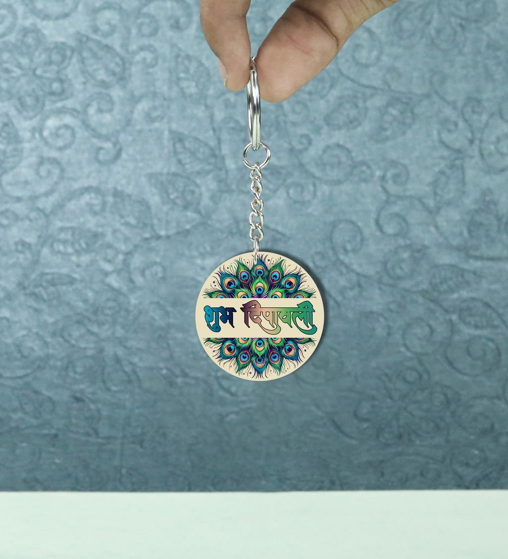 Festival Happiness Glow Diwali Printed Round Keychain Pack of 2