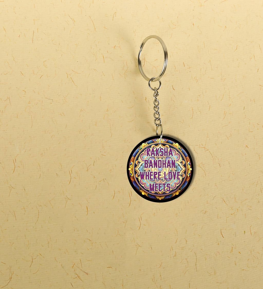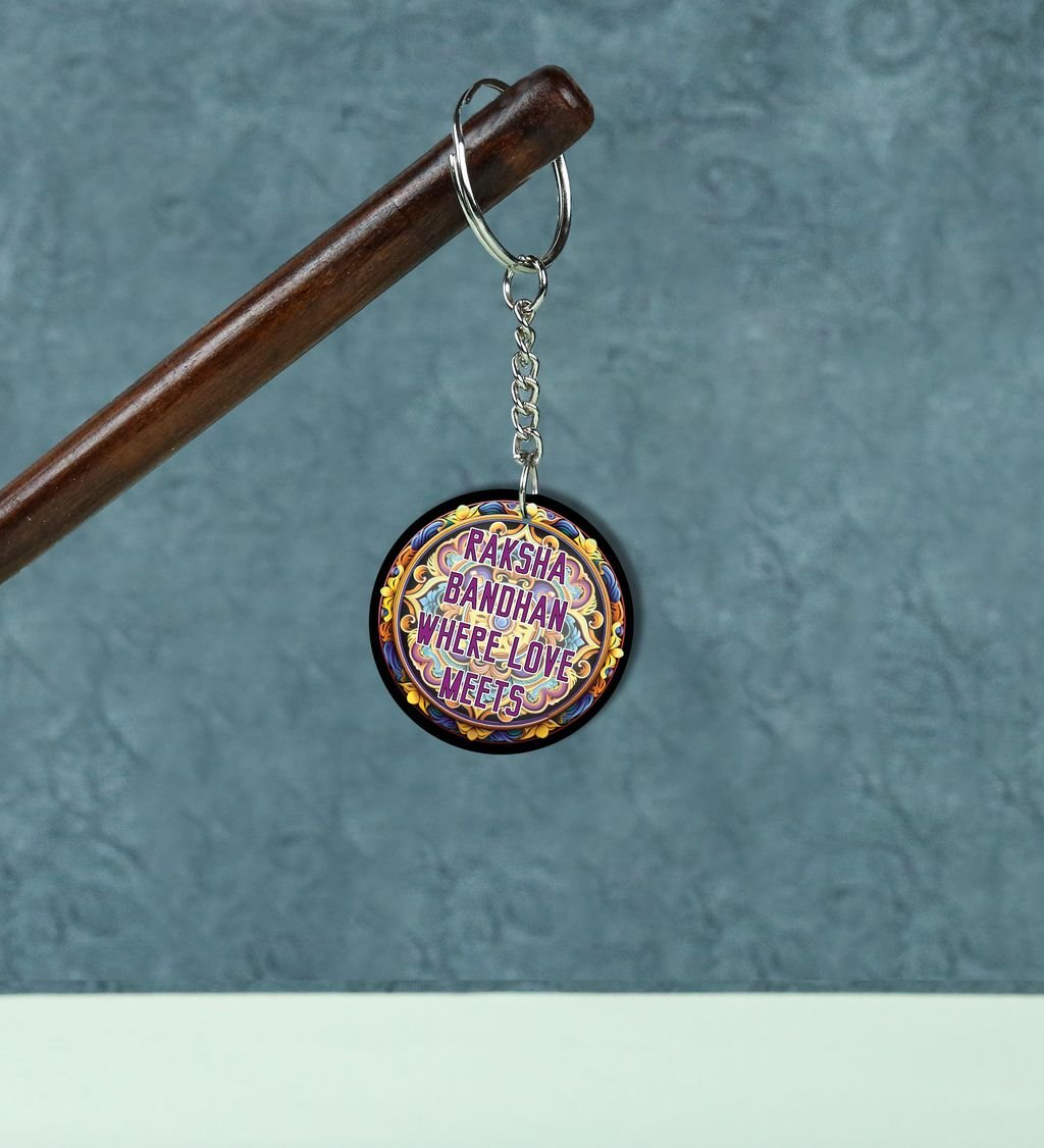 Celebrate the sacred bond of protection and tradition with our Rak?ha?sk?it Round Keychain. Inspired by ancient Indian motifs and symbols of divine guardianship, this keychain blends cultural elegance with daily utility. A perfect token to carry blessings wherever you go, it's more than just a keyholder