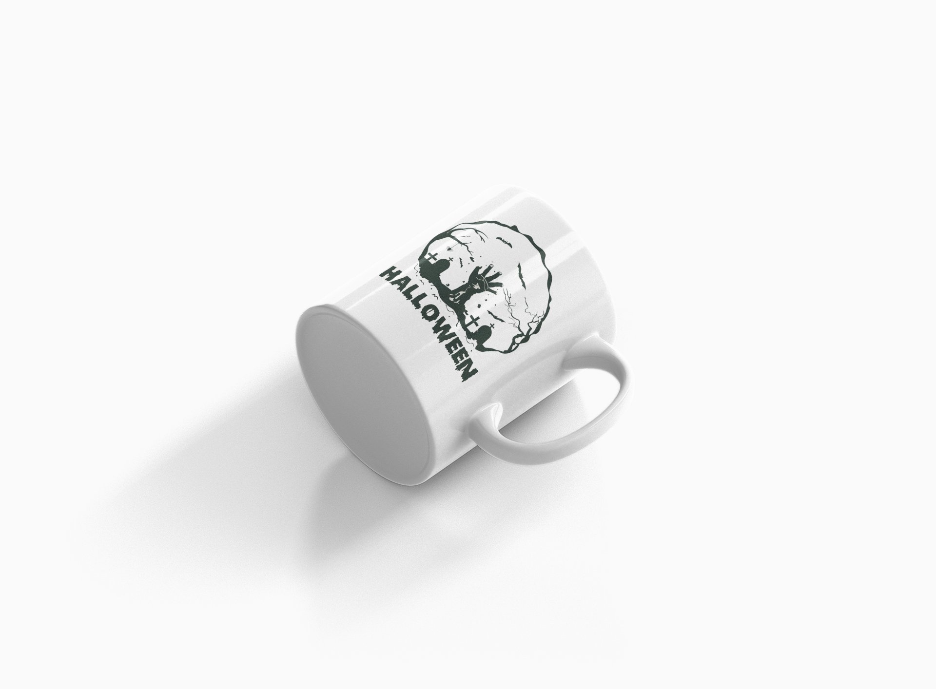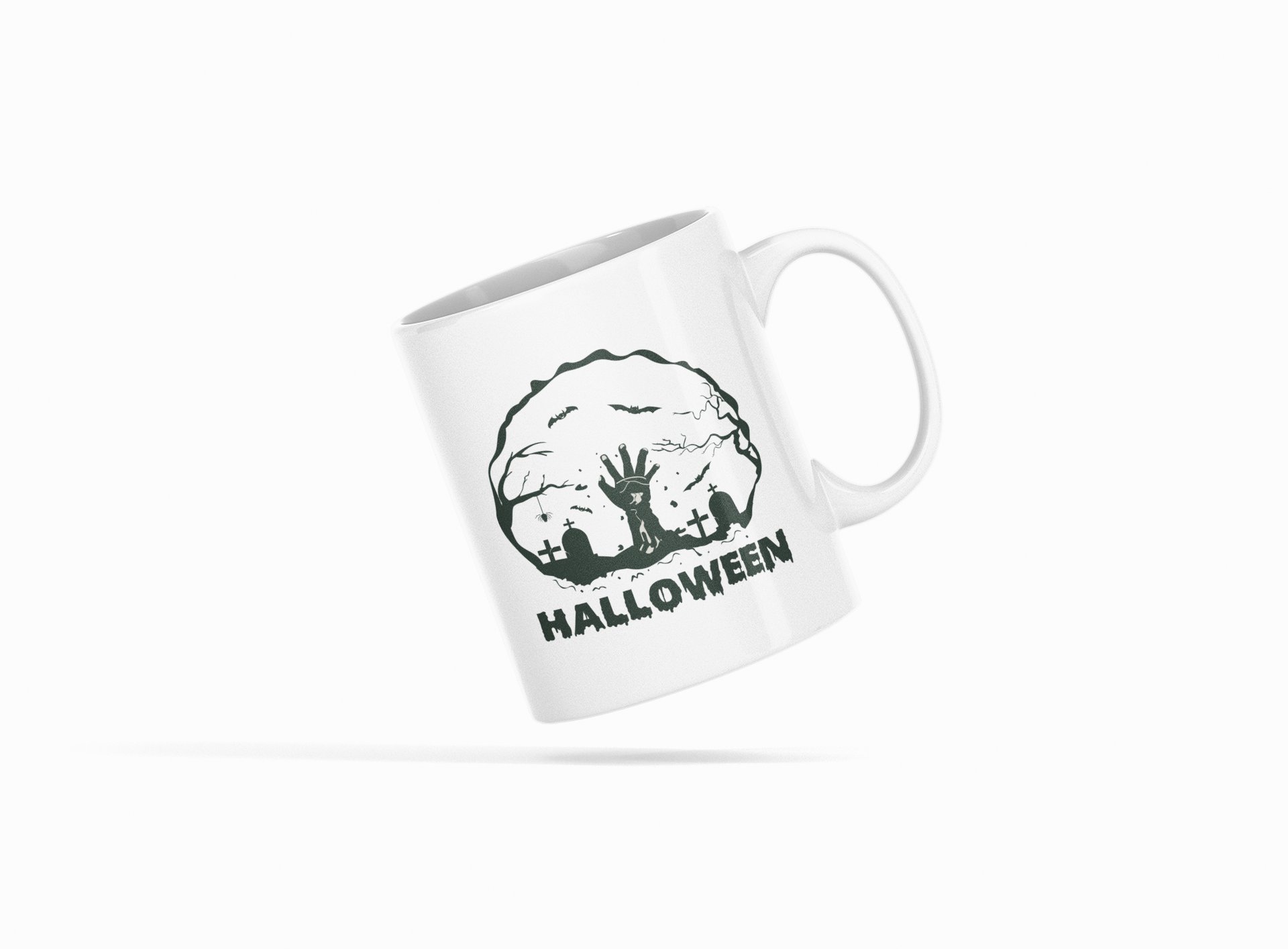 Halloween, graveyard, (BG white) -Halloween Themed Printed Coffee Mugs
