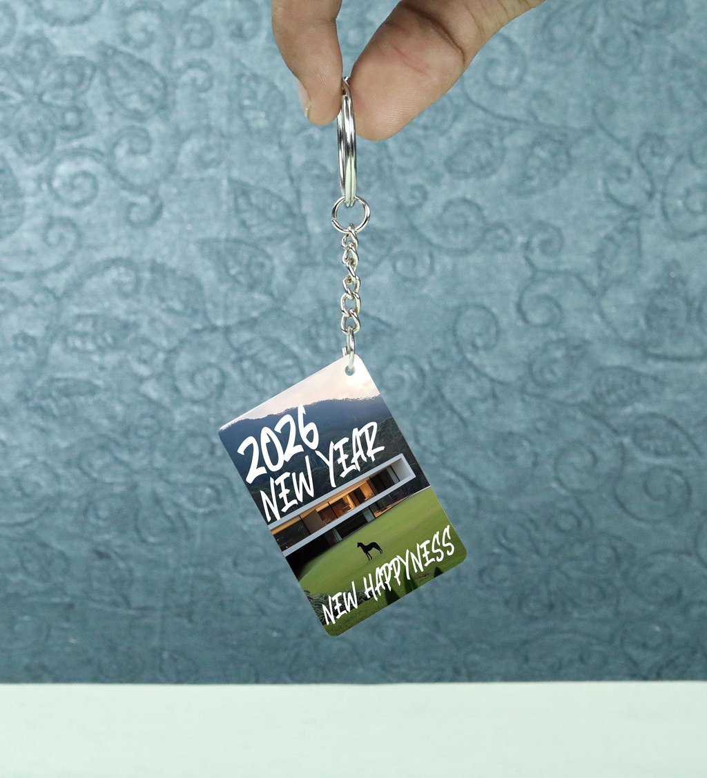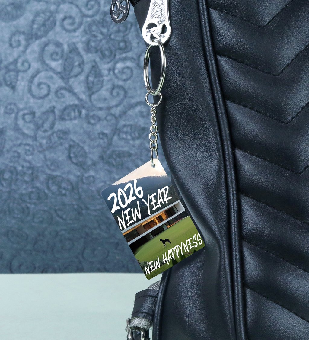 Inspiring Green Landscape with Stylish Home Design to Welcome 2026 New Year Printed Keychain Pack of 2.