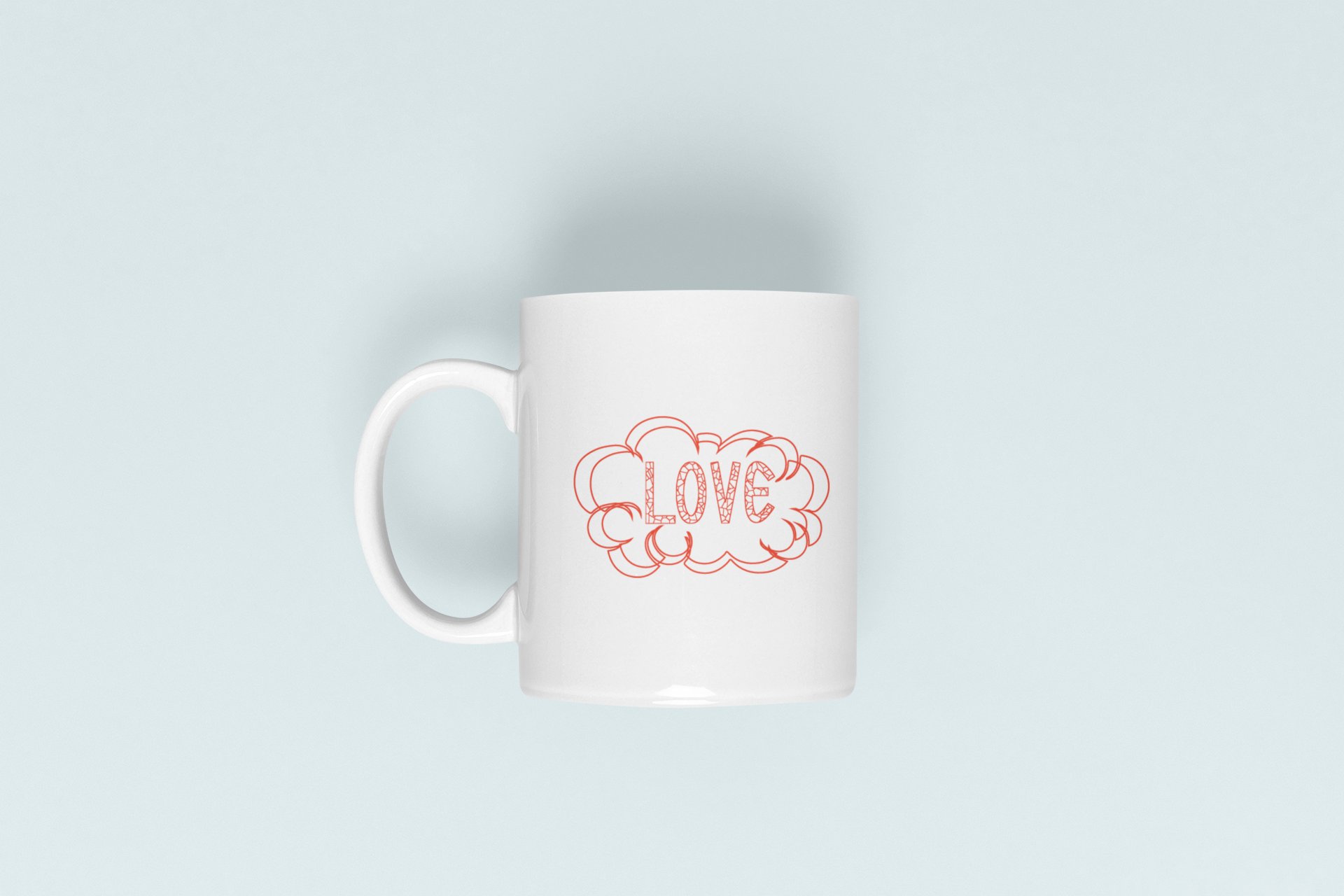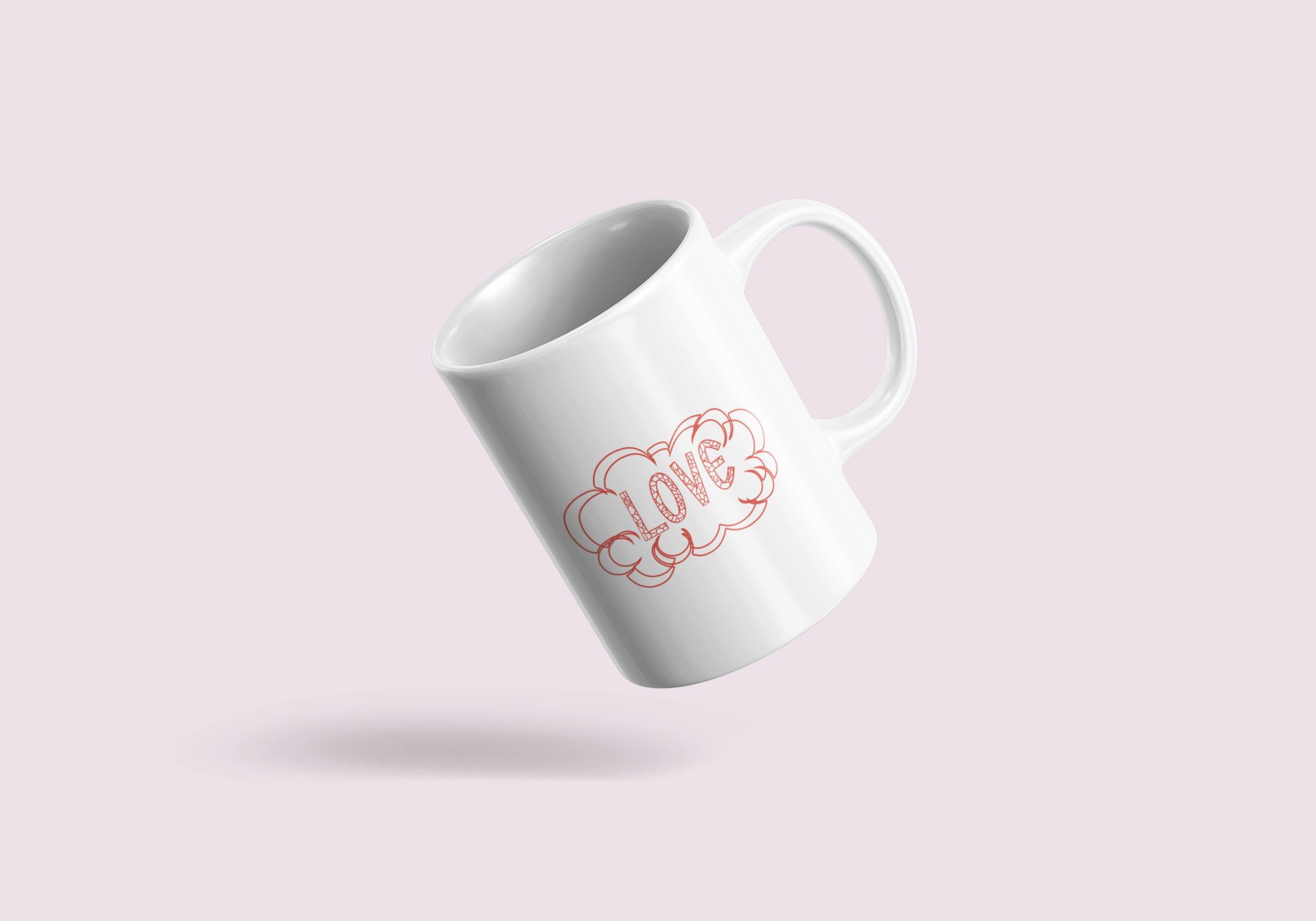 Love Cloud - line art themed printed ceramic white coffee and tea mugs/ cups