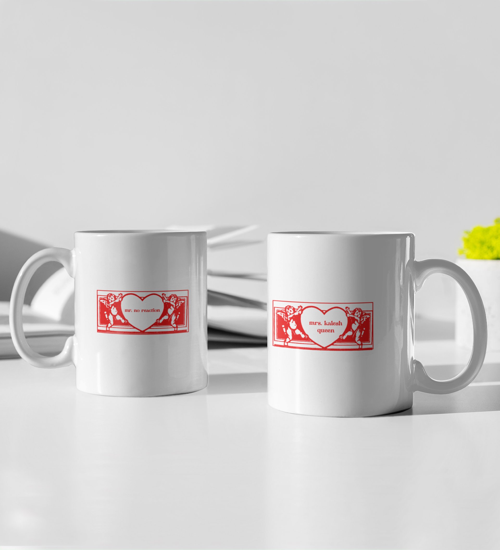 Mr No Reaction/ Mrs Kalesh Queen Printed Couple Coffee Mugs