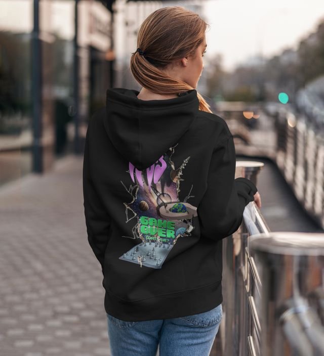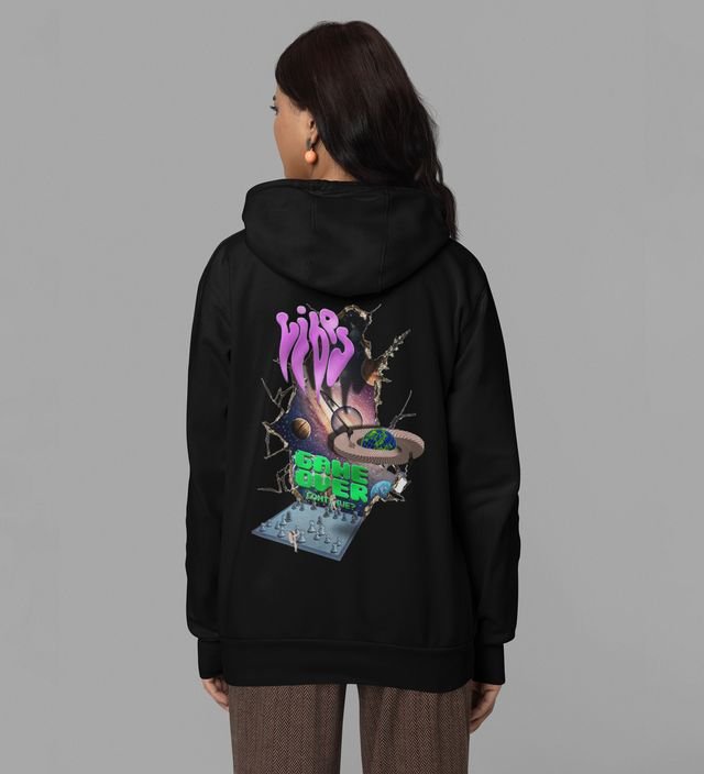 Restart Your Vibe Game Over Black Cotton Printed Hoodies For Women