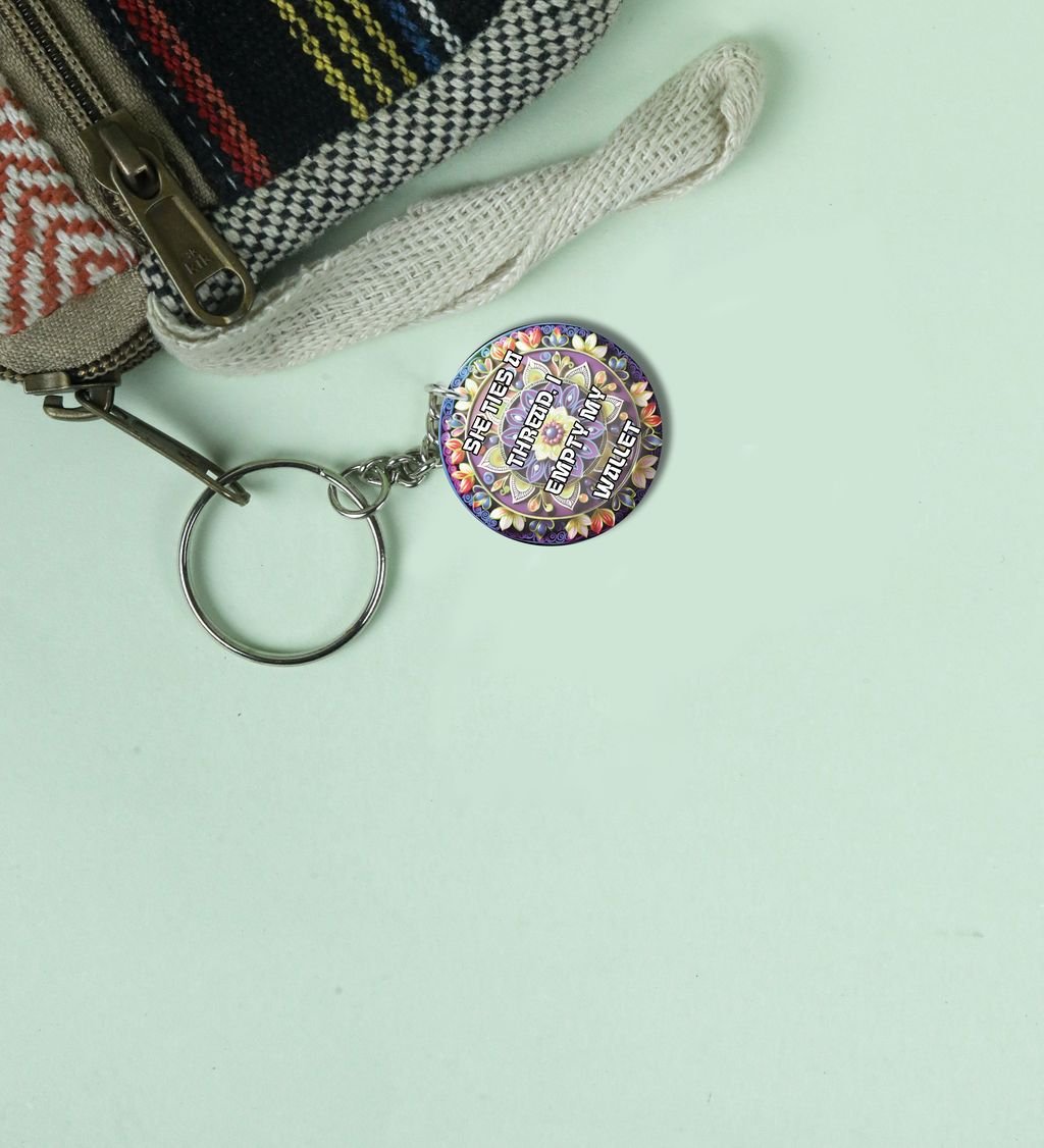 She Ties A Thread Funny Festival Quote Printed Round Keychain Pack of 2