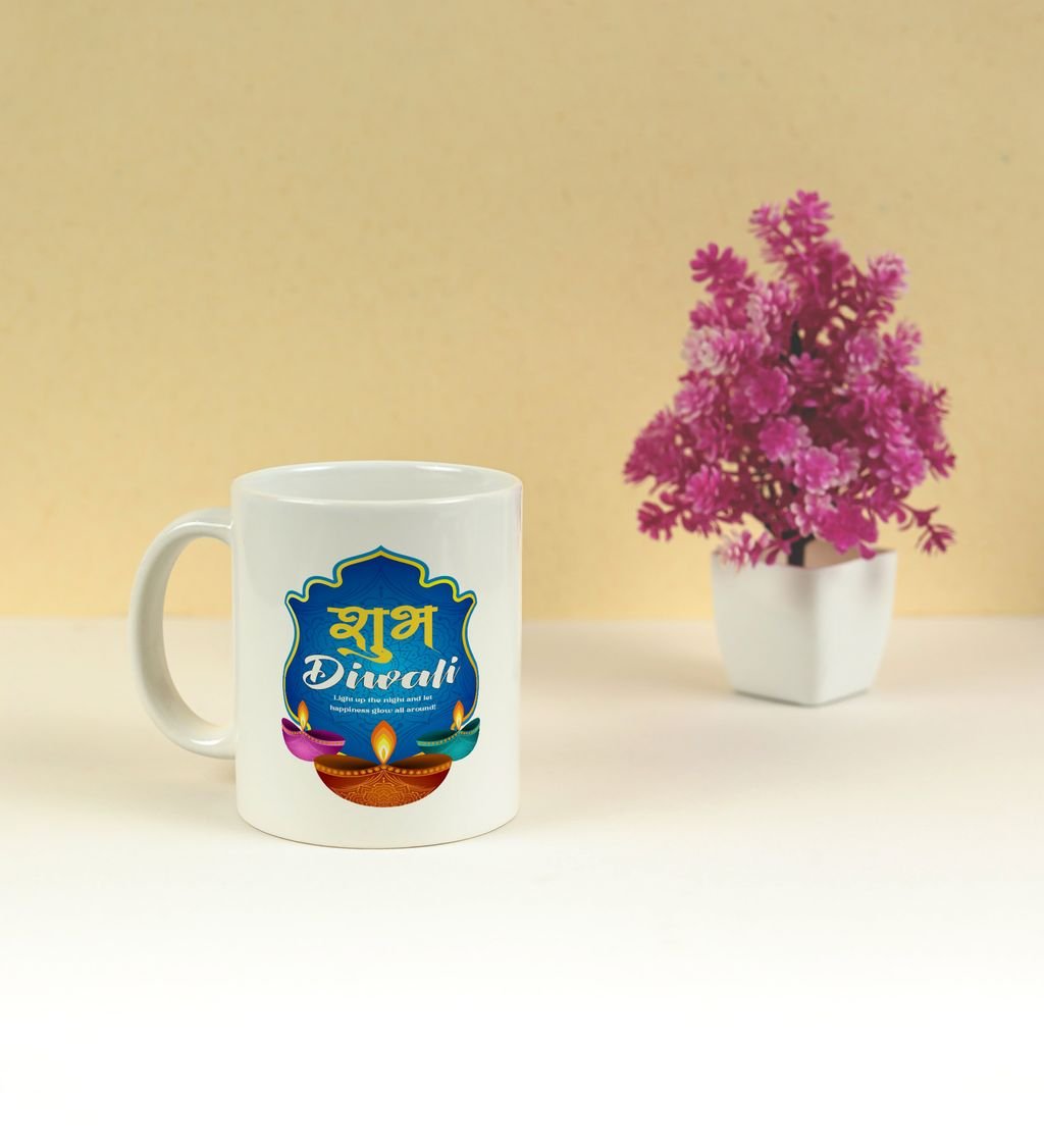 Celebrate the festival of lights with every sip! This beautifully designed Happy Diwali coffee mug adds a festive glow to your mornings and cozy evenings. Featuring vibrant diyas and elegant patterns, it's perfect for gifting or enjoying your favorite brew during the celebrations. Make your Diwali sparkle