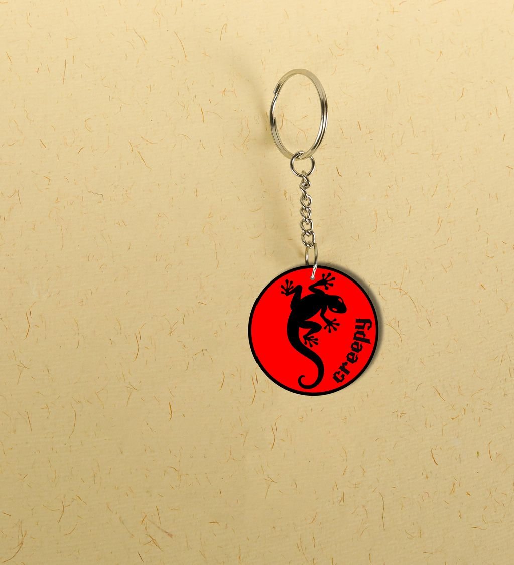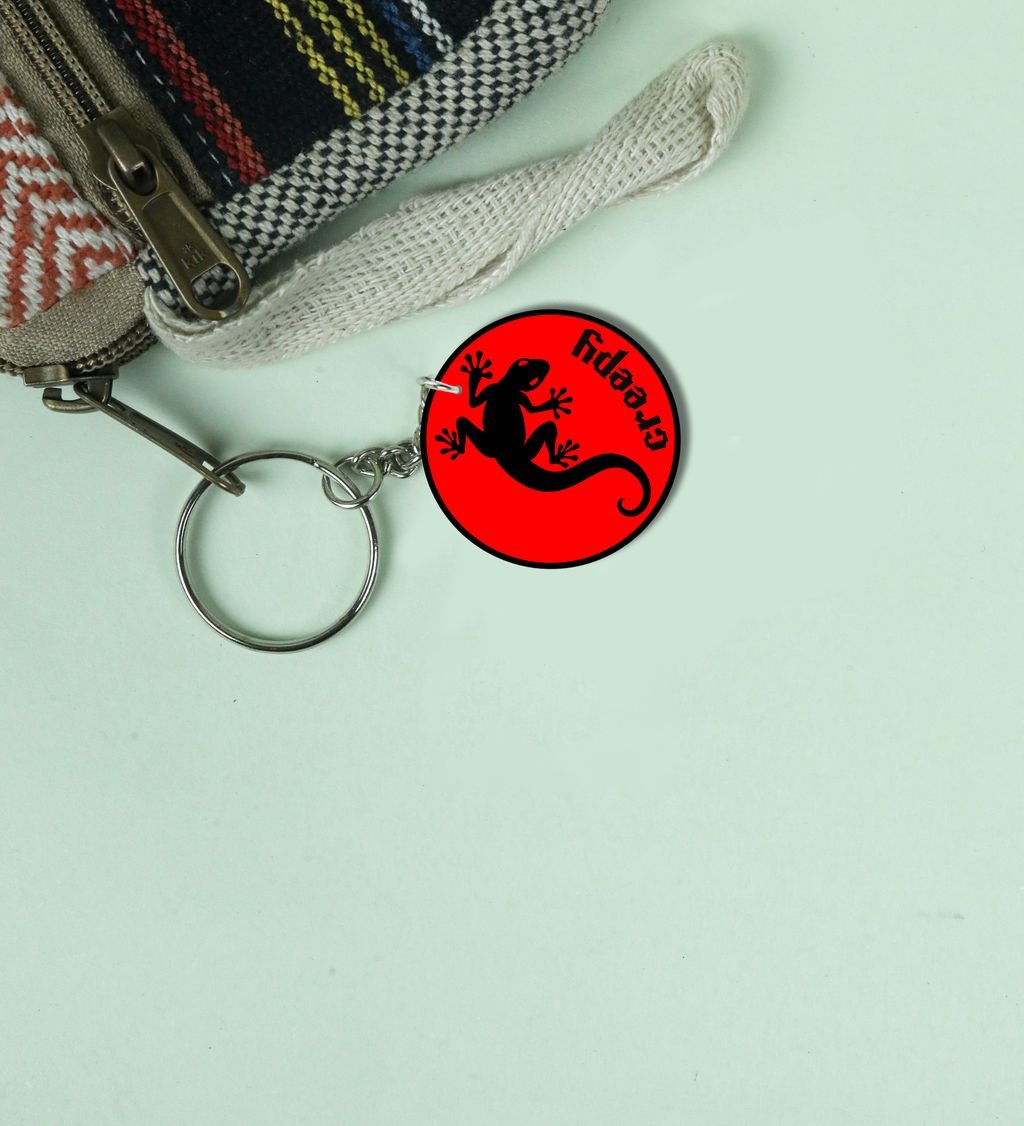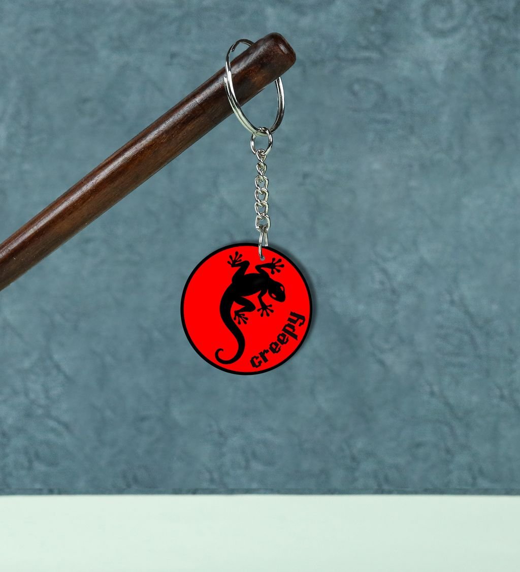 Striking Black Lizard Illustration Paired with Creepy Text Printed Round Keychain Pack of 2