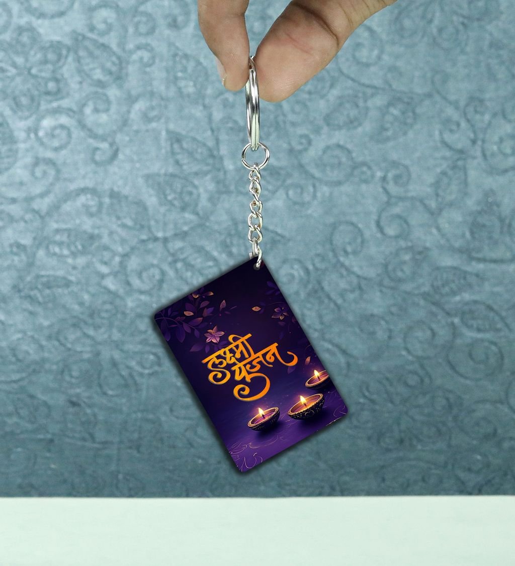 Celebrate the spirit of Deep Utsav with this vibrant rectangular keychain, inspired by the radiant glow of Diwali lamps. Featuring festive colors and intricate patterns, it adds a touch of joy and tradition to your everyday carry. Lightweight and durable, it's perfect for gifting or keeping the festive vibes close all year round. Carry a piece of the festival of lights wherever you go.