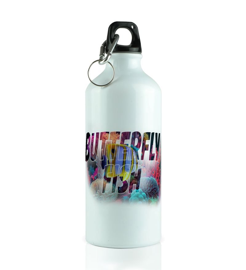 Tropical Reef Butterfly Fish Print Aluminium Printed Sipper Bottle 600ml