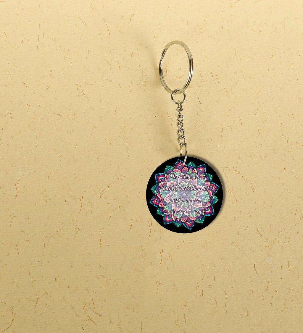 Unbreakable Love Quote With Soft Mandala Printed Round Keychain Pack of 2