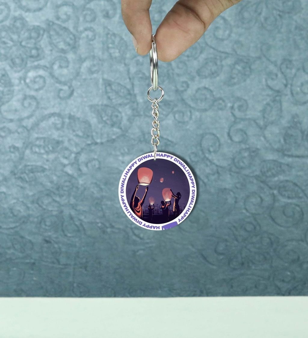 Uplifting Diwali Lantern Celebration Design for Festive Vibes Printed Round Keychain Pack of 2